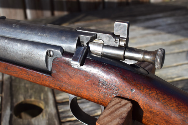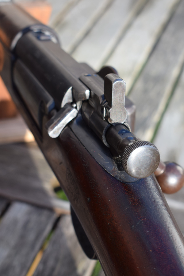 On the left rear of the action sits the Krag’s  single-shot / magazine selector, complete and intact — an iconic feature of the model’s design history.
