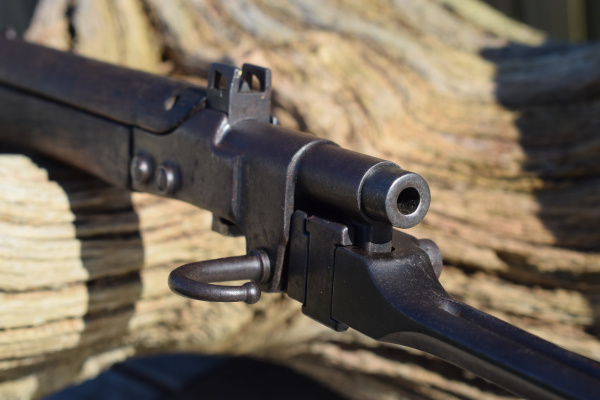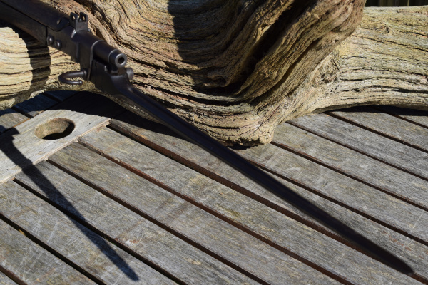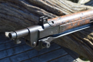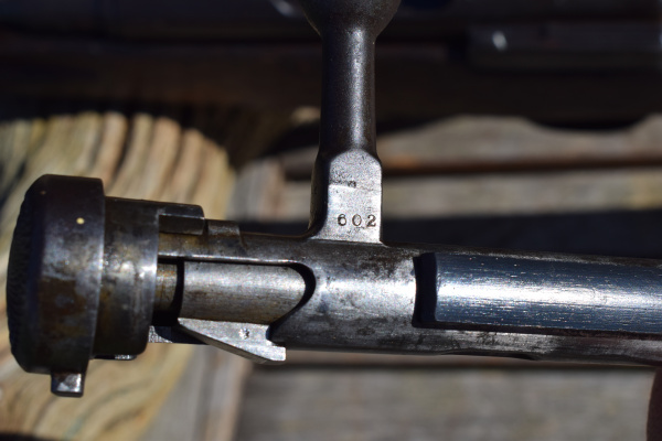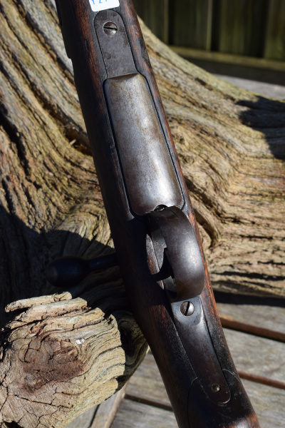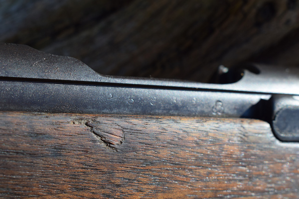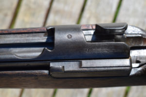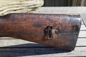 The first thing that is obvious when viewing this stocky carbine is; “Its been places..! and seen stuff and done stuff…” This is not one of those perfect “Showcase Queens” that occasionally appear before us. This is evidently a battle rifle that has been in a few scrapes. Predominantly, the stock wears most of the battle damage, but that is not surprising in itself, as the wood was never a very durable option. The metalwork is dark and in some places rust is appearing. In fact, you can obsrve all the interesting stages of corrosion these old rifles go through once they are finally cast aside. In my humble opinion however, this does not detract from the level of attraction this weapon generates, it merely moistens the appetite; to want to know more about its past lives.