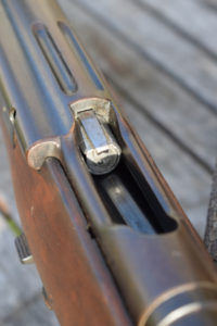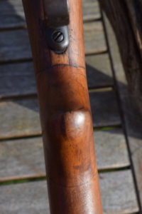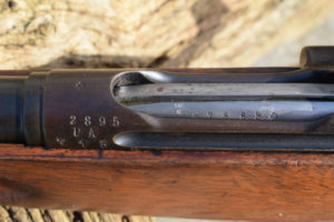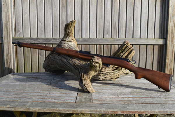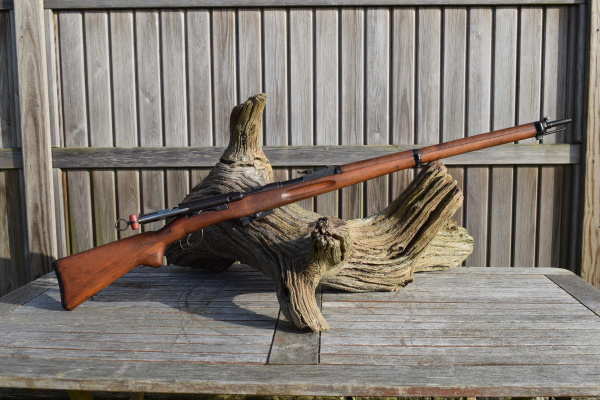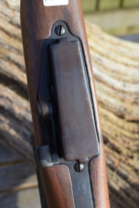 The rifle is still full length, so the round is going to benefit from longer length of rifling acting upon it; increasing accuracy.  The rifle is 51.1/4″ in overall length.  The round steel barrel is 30.3/4″ long.  The trigger Pull to center is 12.1/4″.  The rifle retains its bayonet mount and two sling swivels. Rear sight of 1911 type graduated from 300 to 2000 meters.