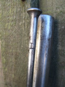 On removal of the steel rod it is possible to see two initials stamped into the channel. It is almost impossible to discern the letters but these would be the stockmakers initials. The ramrod itself also has a character which is difficult to make out towards the mushroom end that looks to be an “L2 or a “4” These marks look to be the chiselled assembly markings which are repeated in the form of Roman numerals on other parts, inside the Musket.