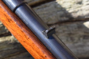 Fine little 6mm Glat (Flobert) bolt action smoothbore. Beech Stock in very fine condition – good all over finish. All metalwork good – not refinished. O.A.L. 42″. Round blued barrel 24″. LOP 14″. Receiver marked “VICTOR”. Bolt in the white. “BUG” proofs. Shaped steel butt-plate blued. “MADE IN GERMANY” on underside of barrel. Mostly good bore with ejector. Dove-tailed simple notch rear sight. “VICTOR. MOD. 1/2” on top of barrel. No Visible Serial Number.