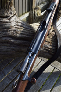 51.1/2″ in overall length with full lengh stock and handguard in walnut. The forend having finger groves under the rear ladder sight. All parts having matching numbers as expected, smaller components showing only the last three digits. Matching numbered barrel, action and bolt and magazine.
