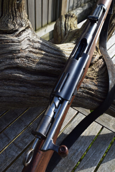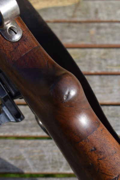 The rifle is in all its original finish with an excellent bore. The wood work is dented and scratched, but there are no splits or cracks. There is high point wear on most components which all add to the genuine feeling that the rifle has, at no point, been re-finished and is entirely original.This is a good example of the marque, and not one to run up against, in any shooting competition with a half competent shooter behind it. These rifles have a well earned reputation for accuracy. A Classic and still a marvel of engineering.